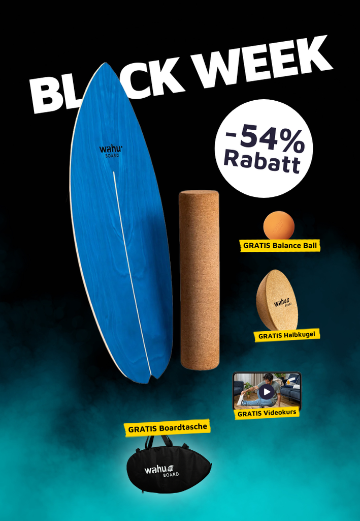 Beim Kauf deines neuen Balance Boards solltest du vor allem auf hochwertiges Material und die richtige Form Wert legen. Wir haben es bereits kurz angedeutet: Je mehr Holz, desto besser. Denn Holz ist einfach ein wahnsinnig robustes Material, das dir zahlreiche Tricks auf dem Balance Board erlaubt. Tricks, bei denen ein Wackelbrett aus Kunststoff eventuell bricht, knackst oder zumindest stark verkratzt wird. Und du kannst uns glauben: Du wirst bald Tricks meistern, von denen du heute noch nicht einmal zu träumen wagst. Die Verbesserung auf dem Balance Board geht bei regelmäßigem Training einfach unglaublich schnell. Deshalb solltest du vorsorgen und dir ein Balance Board zulegen, das sowohl für Anfänger als auch für Profis geeignet ist. So ein Wackelbrett muss einiges aushalten, das wissen wir aus Erfahrung. Aus diesem Grund haben wir das wahu Balance Board mit 12 Holzschichten und einer Oberfläche aus Echtholz-Furnier entwickelt. Das ganze ist bei wahu dann natürlich auch noch Made in Germany, denn beste Qualität und Verarbeitung sind uns extrem wichtig. Wir möchten schließlich, dass du lange Spaß mit deinem Wackelbrett hast. Der positive Nebeneffekt der Produktion in Deutschland: Die Lieferketten und Transportwege sind extrem kurz, was nicht nur gut für die Umwelt ist, sondern auch garantiert, dass du dein neues Wackelbrett schnell in den Händen halten kannst. Drei Fliegen mit einer Klappe - so haben wir das gerne! Aber weiter geht es mit der Frage, wie dein neues Wackelbrett aussehen soll. Kommen wir also zur Form. Diese haben wir nicht aus rein ästhetischen Gründen gewählt, sondern auch diese erfüllt ihre Funktion. Die dynamische Rockashape trägt nämlich maßgeblich dazu bei, dass du bei deinem Training maximale Stabilität und maximale Trickfreiheit genießen kannst. Die Jumps und Flips werden dir leicht und easy gelingen, weil nicht zu viel Material bewegen muss, aber genau ausreichend Material für einen festen Stand zur Verfügung hast. Probiere es aus - dann weißt du ganz schnell sehr genau was wir meinen! Nicht ganz so wichtig, aber trotzdem schön: Bei wahu kannst du dein Wackelbrett in unterschiedlichen Designs auswählen. Ganz natürlich in Holzoptik, in sattem Meerblau oder mit Muster - unsere wahu Balance Boards gibt es in verschiedenen Looks. Einer davon passt bestimmt auch perfekt zu dir! Nice to know: Bei unseren wahu Balance Boards ist selbstverständlich die Korkrolle mit dabei, damit du sofort mit dem Boarden loslegen kannst. Warum eine Korkrolle? Nun ja, Kork ist ein natürliches und sehr langlebiges Material. Es ermöglicht einen wunderbaren Gleiteffekt ohne dabei zu rutschig zu werden. Außerdem ist es auch für die Anwendung im Freien gut geeignet. Klar ist ein Vorteil des Balance Boards, dass es du es bei jedem Wetter auch Indoor benutzen kannst. Aber du kannst deine Bewegungsfreiheit auf dem Balance Board natürlich auch Outdoor genießen. Im Sommer bei Sonnenschein am See oder einfach nur kurz im Garten oder auf dem Balkon brauchst du nahezu keine Vorbereitung und kannst sofort loslegen. Unser Tipp: Plane dir zu Beginn deines Trainings täglich etwa 15 Minuten Zeit für dein Balance Board ein. Das klingt wenig, aber in dieser Zeit kannst du schon so einiges auf dem Wackelbrett leisten. Und aus Erfahrung werden aus diesen 15 Minuten sowieso schnell 20, dann 30 und dann 60... weil es einfach so verdammt viel Spaß macht! Aber Moment, wir haben ja noch gar nicht das Extra-Plus deines wahu Balance Boards erwähnt: Dein wahu Balance Board und seine Verpackung kommen vollständig ohne Plastik aus! Das finden wir in der heutigen Zeit extrem wichtig. Und noch mehr: Dein wahu Balance Board trägt sogar noch zum Thema Nachhaltigkeit bei. Denn für jedes wahu Balance Board säubern wir mit Dominik und seinem Startup Oceanmata das Meer und die Strände rund um Bali. Pro Balance Board wandert 1 Kilogramm Plastikmüll in den Recycling-Kreislauf. Das machen wir, weil wir die Zustände an den Stränden von Bali selbst erlebt haben. So viel Müll im Meer - das tut uns als leidenschaftlichen Surfern im Herz und in der Seele weh. Da müssen wir einfach aktiv werden... machst du mit?